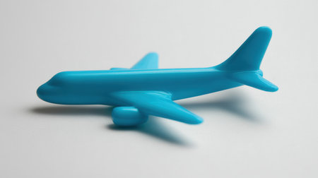 A vibrant blue toy airplane rests against a clean white background, perfect for themes of travel, playtime, and imaginative activities for children.