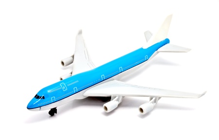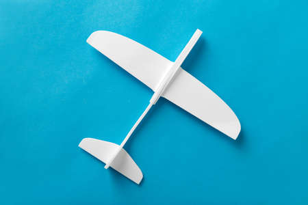 white toy plane model on blue background