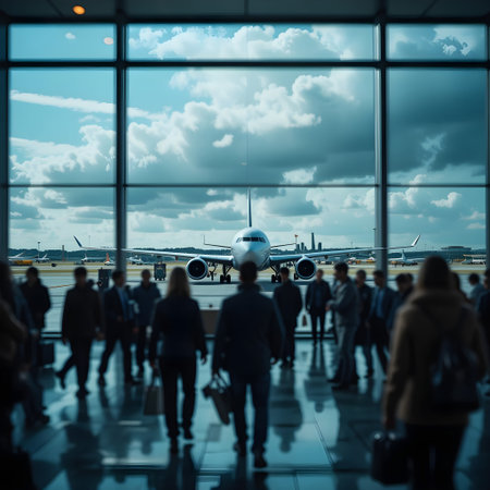 Modern airport terminal, waiting for departure, business travel in motion generated by artificial intelligence