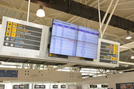 Airport flight information board or display and on time status. Different cities and destinations from all over the world.