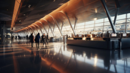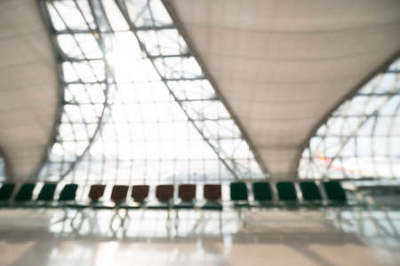 Blur background of terminal departure check-in with no people during COVID outbreak at Suvarnabhumi airport, Thailand