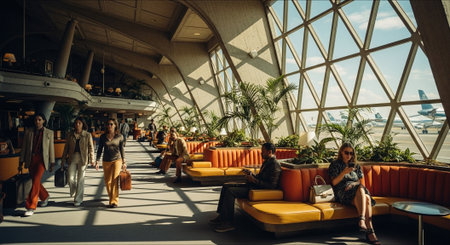 Modern airport terminal, waiting for departure, business travel in motion generated by artificial intelligence