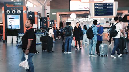 Singapore, 13 july 2018. Unrecognizable people with baggages walking in terminal airport