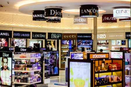DUBAI - MARCH 10, 2015: The Dubai duty-free shopping area interior. Dubai International Airport is the primary airport serving Dubai and is the world's busiest airport by international passenger traffic