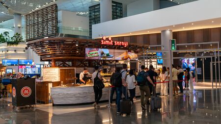 Istanbul Airport, Turkey - September 16, 2022. Shopping and restaurant area at the new Istanbul airport