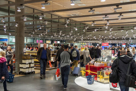 OSLO GARDERMOEN, NORWAY - NOVEMBER 2:Interior of Duty Free Shop at Oslo Gardermoen International Airport on november 2, 2014 in Oslo. The airport has biggest passenger flow in Norway.