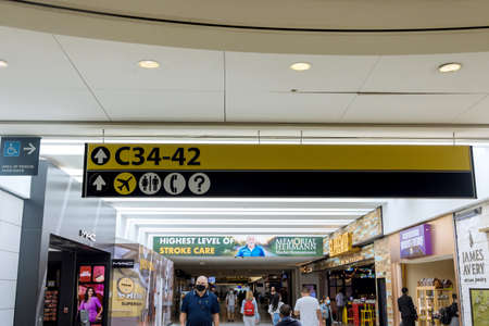 20 September 2021 Houston TX USA: Passengers walking in airport with Houston George Bush Intercontinental Airport (IAH)
