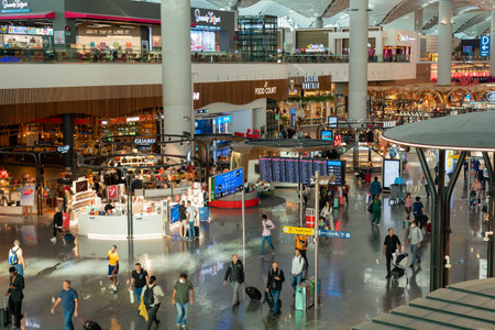Istanbul, Turkey - September 28th 2019: People in the departure hall of the airport. The new airport was opened in October 2018.