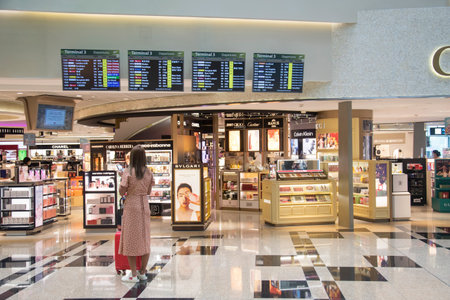 SINGAPORE - CIRCA SEPTEMBER, 2016: goods on display at a store in Singapore Changi Airport. Changi Airport is one of the largest transportation hubs in Southeast Asia.