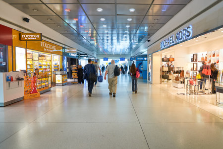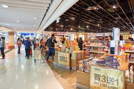 HONG KONG - NOVEMBER 03, 2015: inside of Hong Kong Airport. Hong Kong International Airport is the main airport in Hong Kong. It is located on the island of Chek Lap Kok.