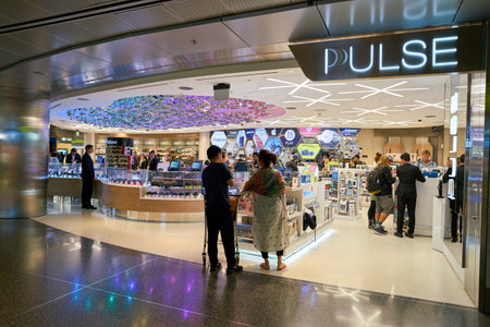 DOHA, QATAR - CIRCA MAY, 2017: Pulse store at Hamad International Airport of Doha, the capital city of Qatar.