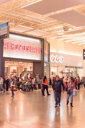 GRAPEVINE, TEXAS, US-NOV 29, 2019: Crowded of diverse people shoppers at Grapevine Mills mall during Black Friday weekend shopping event. Diverse-scale market place in Dallas-Fort Worth Metroplex