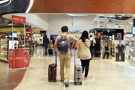 Singapore, 13 july 2018. Unrecognizable people with baggages walking in terminal airport