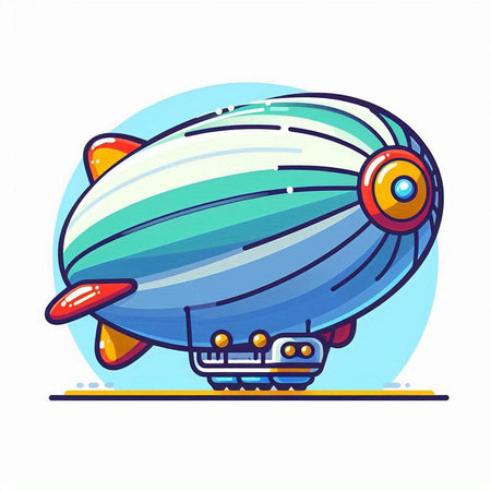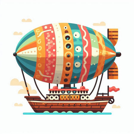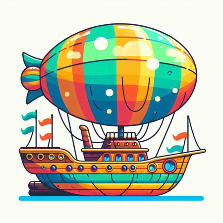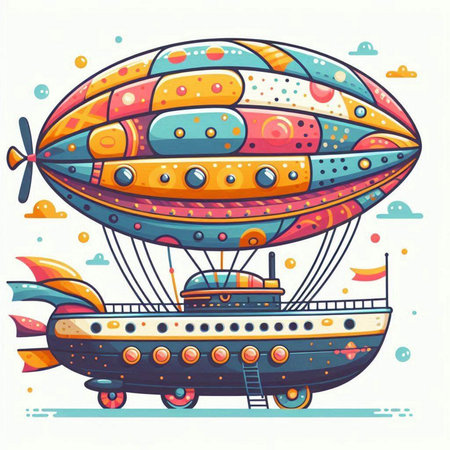 Vector illustration of airship in cartoon style. Colorful flat design.
