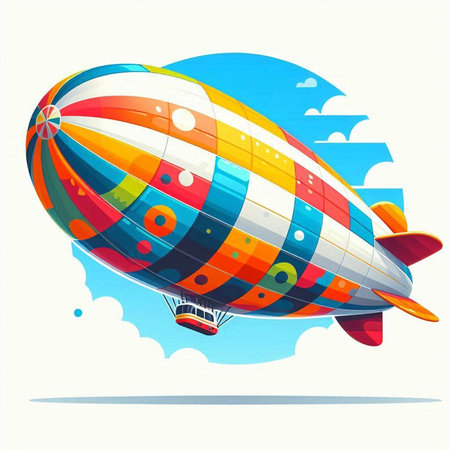 Colorful airship on a white background. Vector illustration for your design