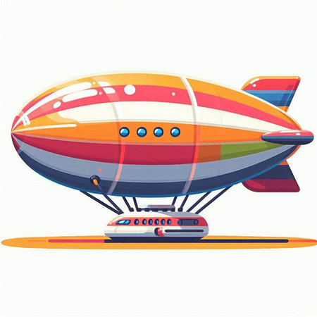 Airship vector illustration isolated on white background. Colorful airship