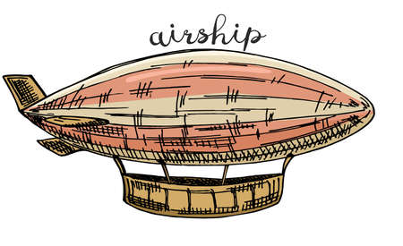 Airship sketch in Steampunk style. Ink sketch of dirigible isolated on white background. Hand drawn vector illustration. Retro style.