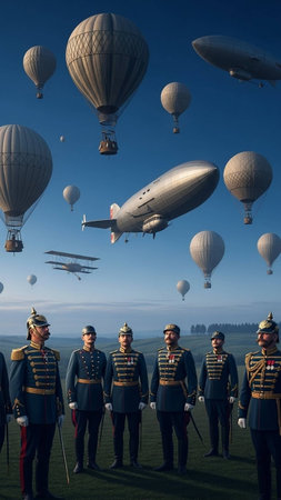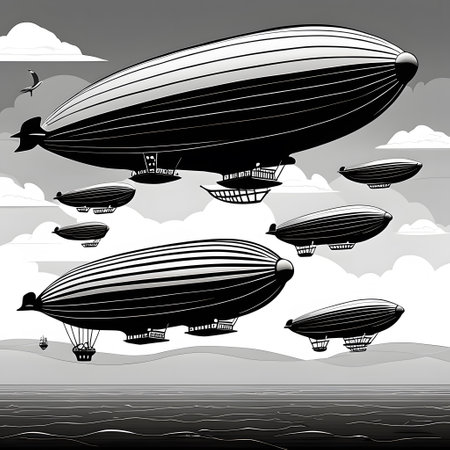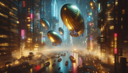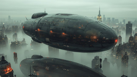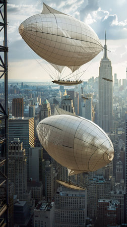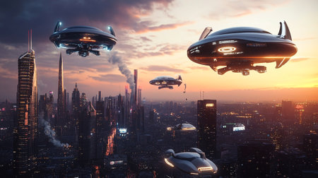 Conceptual design of future airships, zeppelins soaring through the air. Ai generated.