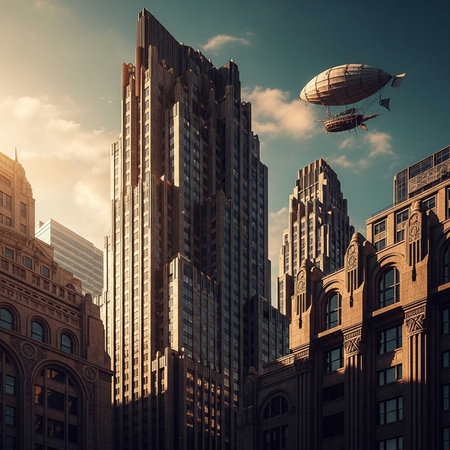 antastic airship soaring through the clouds, powered by steam and magic. Generative