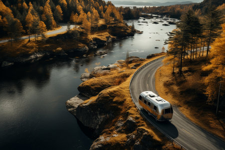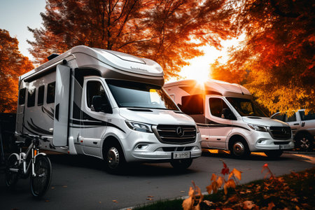 Autumn holiday with the camper. Campervan rent in autumn. Traveling in a campervan. Family vacation travel RV, caravan car vacation holiday trip in motorhome