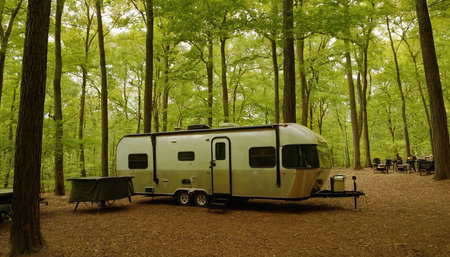 A photo of a comfortable travel trailer that offers freedom and harmony with nature, creating an unforgettable experience on road adventures.