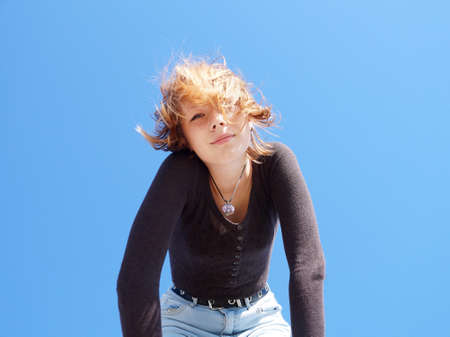 Portrait of beautiful caucasian teenager girl with flying hair