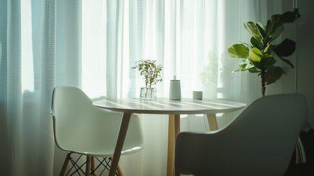 Blurred minimal livingroom with soft sunlight for background usage. blur interior background concept. white and bright tone. Business concept.