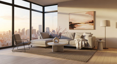 modern bright interiors apartment Living room 3D rendering illustration computer generated image