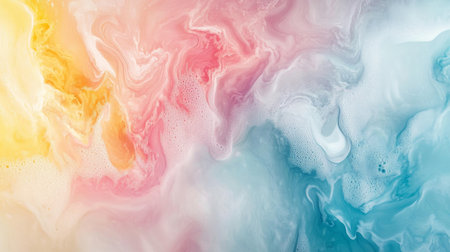 Abstract fluid art with swirling pastel colors in pink, yellow, and blue tones. Modern artistic pattern and creative expression concept