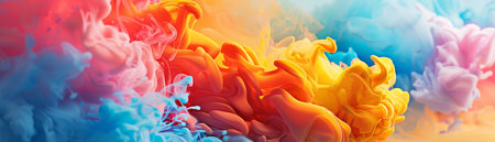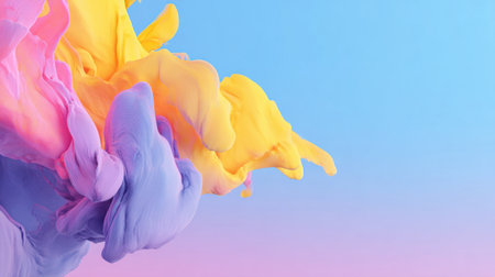 A visually captivating 3D rendering featuring an abstract creative template. Acrylic ink dances in water, creating a mesmerizing blend of pastel pink, orange, blue, aqua, and violet swirling fog. An abstract background in vibrant colors, perfect for wallpaper and artistic projects