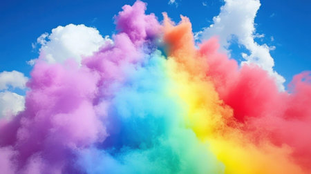 A colorful background with rainbow and a blue sky