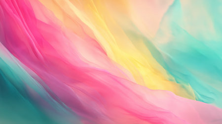 Experience the beauty of soft flowing fabric waves in pastel tones. This abstract background features delicate layers of pink, yellow, and green, perfect for creative projects.