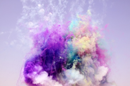 The image shows a colorful smoke cloud with a gradient from blue to pink.