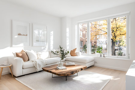 Bright and airy living room interior design with natural light