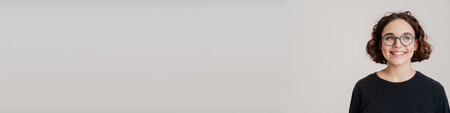 Happy joful adult fashionable woman smiling cheerfully, female being in great mood.