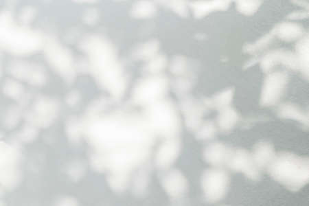 Leaves shadow and tree branch abstract background. Natural leaves tree branch light bokeh shadows and sunlight dappled on white concrete wall texture for background wallpaper and any design