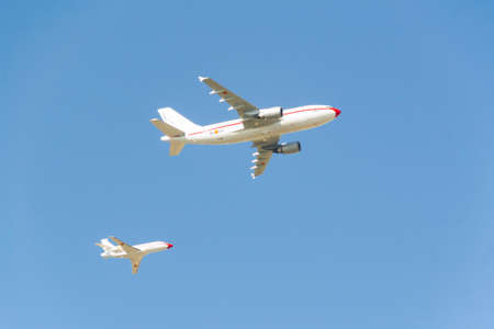 Jet on Blue Sky Background FRA Airplane Aviation. High quality photo