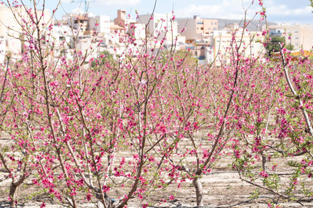Peach blossom in Cieza, Mirador El Horno. Photography of a blossoming of peach trees in Cieza in the Murcia region. Peach, plum and nectarine trees. Spain
