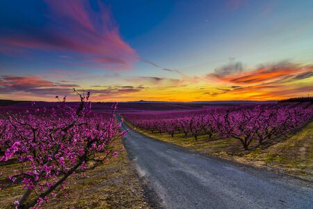 Sunset in the peach blossom fields (Aitona, Lérida, Spain)