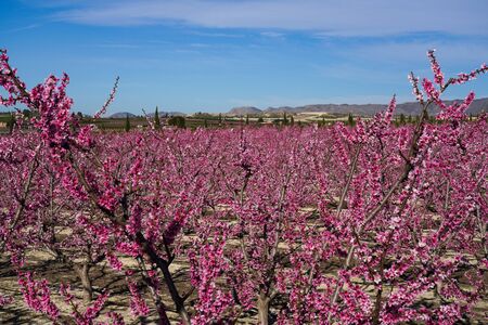 Peach blossom in Cieza La Torre. Photography of a blossoming of peach trees in Cieza in the Murcia region. Peach, plum and nectarine trees. Spain