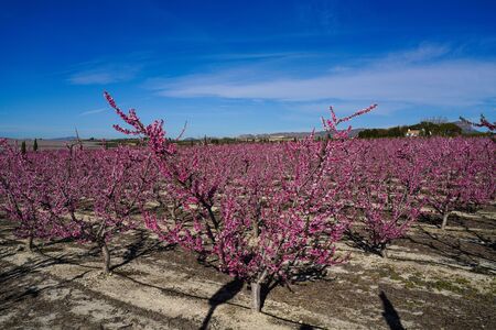 Peach blossom in Jumilla. Photography of a blossoming of peach trees in Jumilla in the Murcia region. Peach, plum and nectarine trees. Spain
