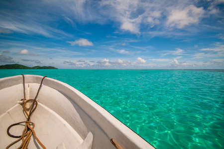Beautiful view of the sea from the boat on the beach.