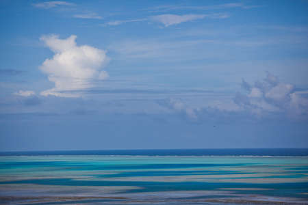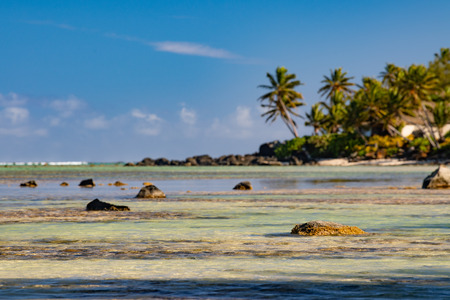 View of the coral reef, Aitutaki island, Cook Islands, South Pacific. Copy space for text