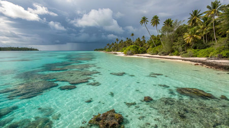island coconut tree on Polynesia beach Wonderful lagoon