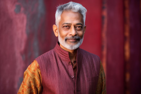 Portrait of happy senior Indian man smiling at the camera. Mature people and lifestyle concept.