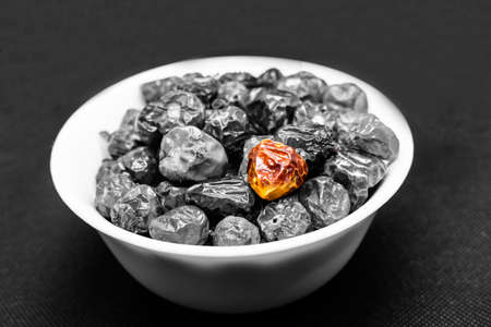 Kurma Ajwa, Ajwa Dates. In the month of Ramadan, dates are eaten when breaking the fast. Kurma Ajwa is one of the special fruit of Arabic. Selective focus.
