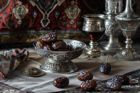 dates traditional muslim culture food for ramadan kareem night, prayer for Allah by fasting food and consumed after sunset during Holy month of Ramadan