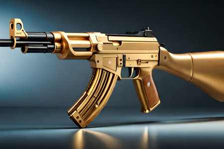 Automatic assault rifle on a dark background. 3d illustration.golden custom ak47 kalashnikov riffle concept