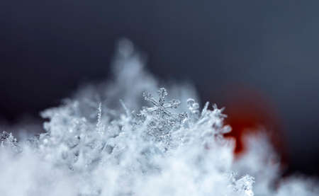 Extreme macro photo of a snowflake. Natural snow texture. Macro texture of snow, snowflakes.