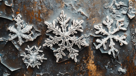 snowflakes on a rusty iron background, close-up